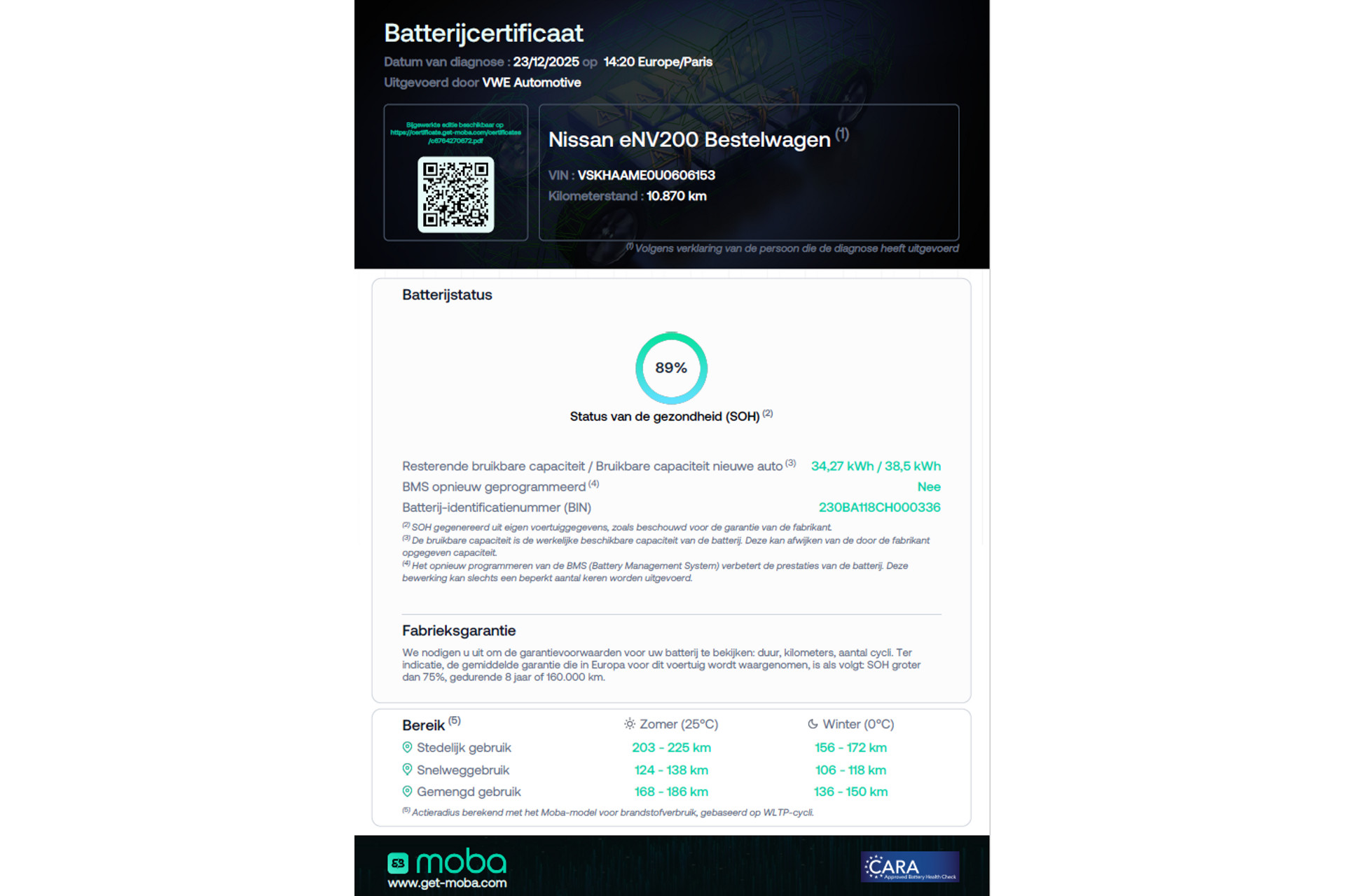 • Actieradius (volgens fabrikant)