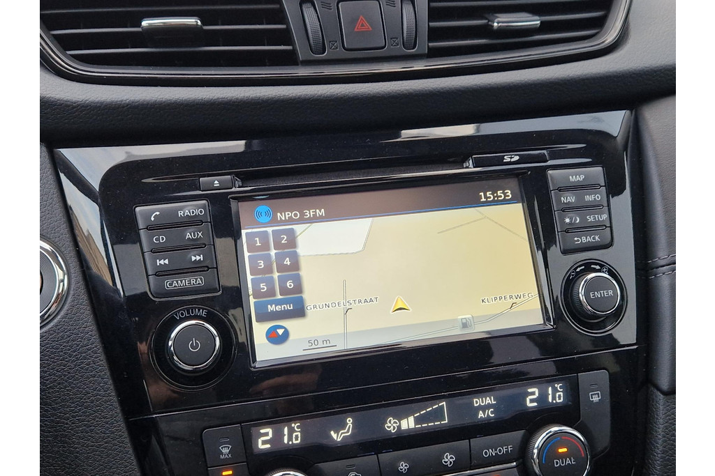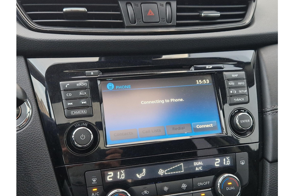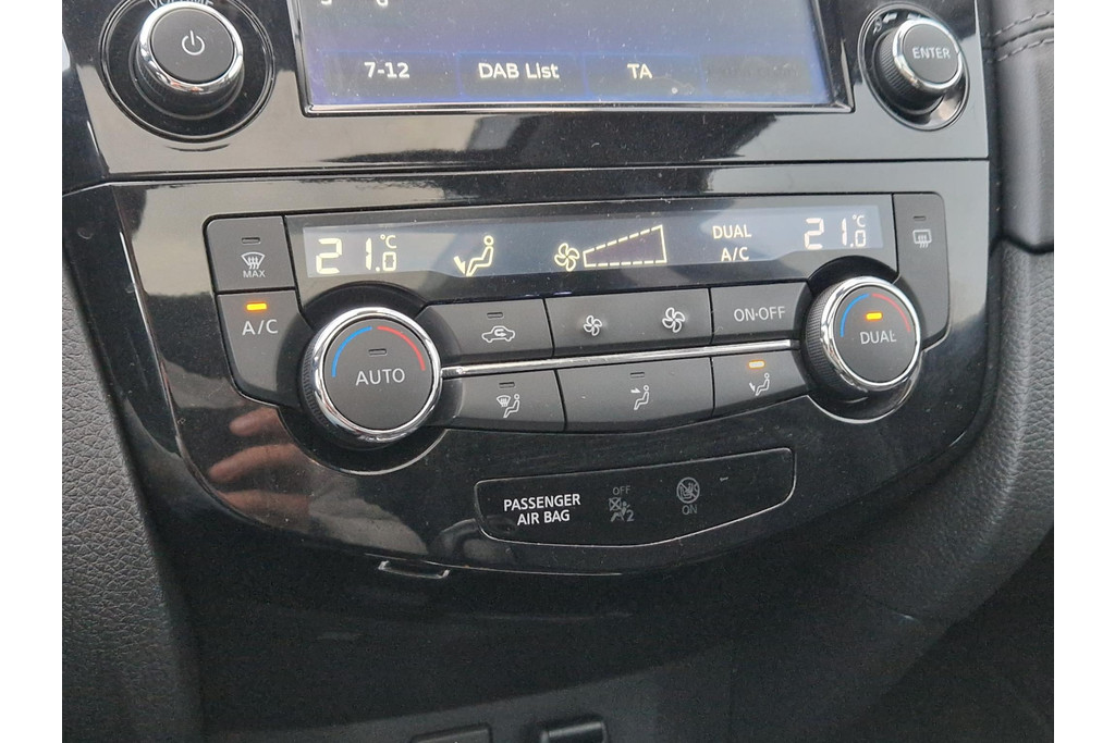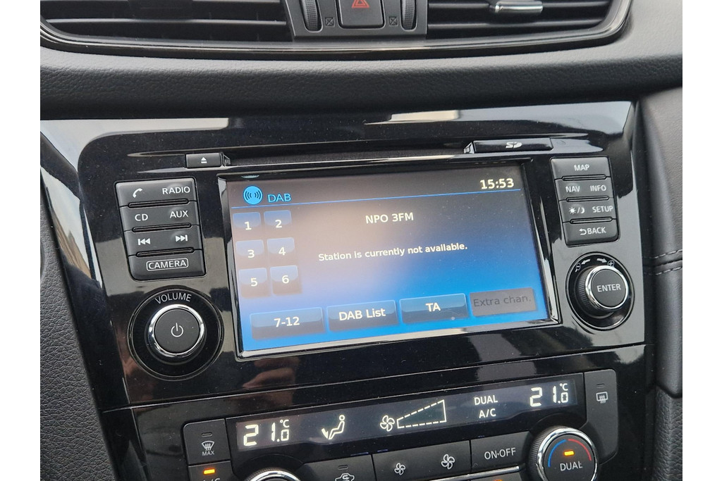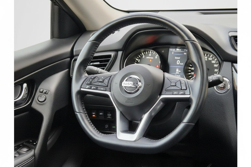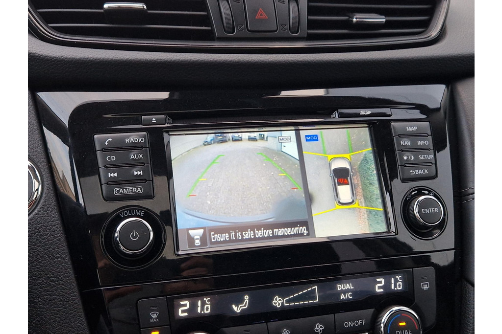 De 360 graden camera kan het blinde vlek probleem van de achteruitkijkspiegel oplossen, waardoor ongevallen worden voorkomen. U kunt uw handen aan het stuur houden en uw ogen op de weg. Want het audio-installatiesysteem, met DAB-ontvangst, en het full map navigatiesysteem bedient u vanaf het stuurwiel. Natuurlijk is er ook automatische airconditioning aanwezig. Ervaar het comfort van inparkeren met parkeersensoren. Deze auto laat zich moeiteloos in elk parkeervak manoeuvreren. De automatisch inschakelbare verlichting en regensensor zorgen dat onderweg automatisch de verlichting en de ruitenwissers worden ingeschakeld. Daarmee nemen ze u veel werk uit handen. Deze Nissan is voorzien van cruise control, keyless entry, automatisch dimmende binnenspiegel en lederen stuur en versnellingspook.