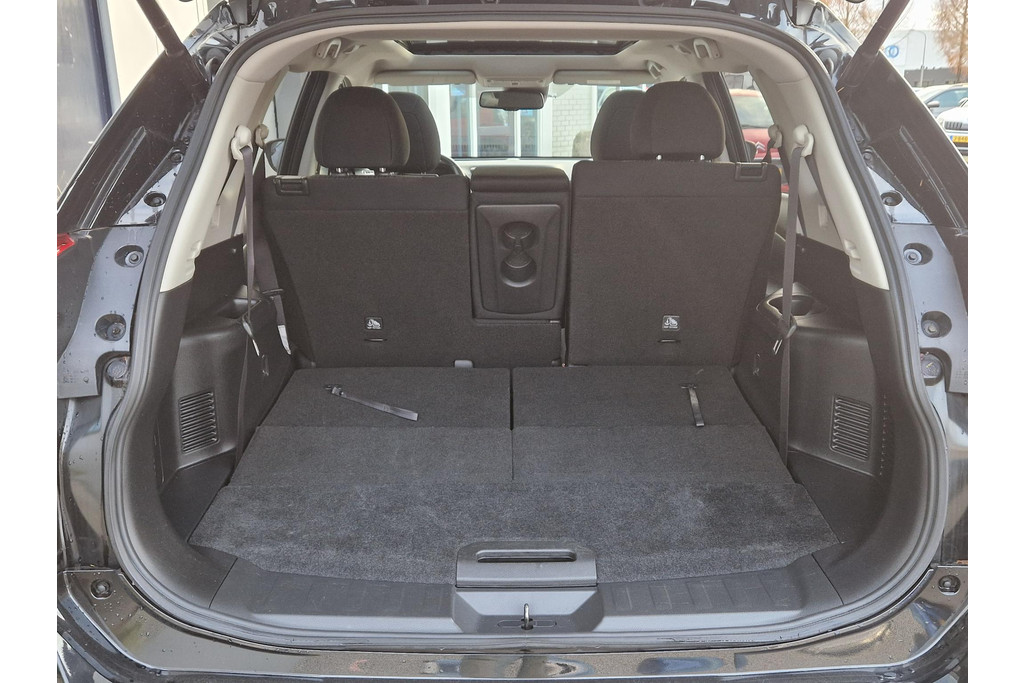 Rijden als nieuw? Dan is deze Nissan X-Trail 7-persoons een fantastische buitenkans. Prille cijfers op de teller, piepjong ogend, verbluffend actueel in extra's en opties... Deze Nissan X-Trail heeft het allemaal! De aandrijving van deze Nissan wordt verzorgd door een viercilinder 160pk benzinemotor en een automaat. Life is easy! In ieder geval met dit elektrisch bediende glazen panoramadak. De bagageruimte is toegankelijk via een comfortverhogende elektrische achterklep. Ook 18 inch lichtmetalen velgen, LED-dagrijverlichting, aluminium dakrailing, elektrisch inklapbare buitenspiegels, in hoogte verstelbare passagiersstoel en extra getint glas zijn aan boord.