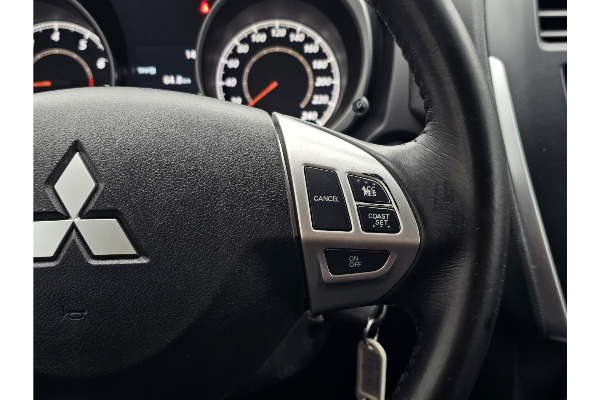 Natuurlijk is er ook electronic climate control aanwezig. Laat u niet afleiden door gerommel aan de audioknoppen. De audiobediening op het stuur zorgt dat u altijd geconcentreerd blijft. In deze Mitsubishi kunt u zich concentreren op het verkeer, terwijl de auto de omgeving voor u in de gaten houdt. Een automatisch inschakelbare verlichting zorgt dat de verlichting aangaat als het donkerder wordt - in tunnels bijvoorbeeld - en de regensensor schakelt de ruitenwissers in als het nodig is. U hoeft er niets aan te doen. Ook op de korte stukken is de cruise control een uitkomst. Kijk maar bij de benzinepomp! Deze Mitsubishi ASX is voorzien van keyless entry, waardoor de portieren en achterklep vanzelf open gaan als u in de nabijheid komt.