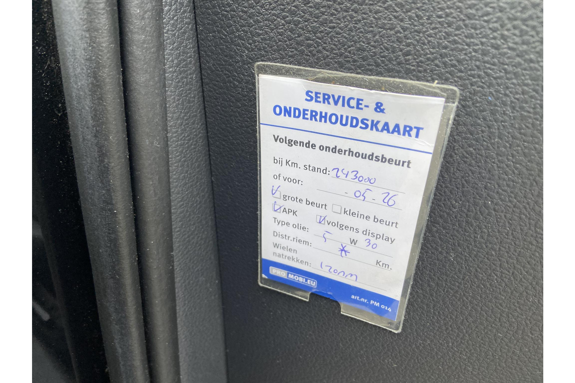 De eerstvolgende onderhoudsbeurt is in 2026 bij 243000 km.