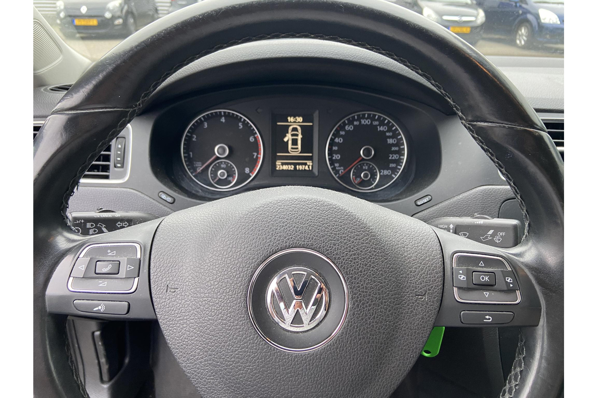 De bediening van het audiosysteem en het navigatiesysteem gebeurt met knoppen op het stuur. Het comfort wordt verhoogd door de aanwezige automatische airconditioning. Hoeveel ruimte u nog heeft bij het insteken? De parkeersensoren laten het weten! Da's gemakkelijk! Deze Volkswagen Jetta maakt het rijden graag gemakkelijk. Daarom verzorgt de regensensor de mate van ruitreiniging die de ruitenwissers moeten leveren bij neerslag. Cruise control houdt automatisch de ingestelde snelheid vast. Het is een ideaal hulpmiddel om lange ritten comfortabeler te maken. Ook buitentemperatuurmeter, automatisch dimmende binnenspiegel, lederen stuur, isofix-aansluiting, centrale deurvergrendeling met afstandsbediening en boordcomputer horen tot de voorzieningen op deze auto.