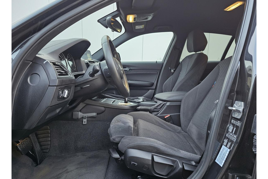 De achteruitrijcamera vergemakkelijkt achteruit inparkeren. U ziet duidelijk wat er achter de auto gebeurt. Handig en veilig: Connected Services. Alle vitale functies en data van de auto checkt u via de app op uw smartphone. Laat u onderweg niet afleiden, de bediening van het audio-installatiesysteem en ook het navigatiesysteem met harde schijf gaat met knoppen op het stuur. Aan boord van deze BMW 1-serie is een achteropkomend verkeer waarschuwing voor extra veiligheid. De electronic climate control zorgt voor een behaaglijk klimaat in de auto. Extra opties op deze auto zijn: regensensor, cruise control, sportstuurwiel, keyless entry, automatisch dimmende binnenspiegel en centrale deurvergrendeling met afstandsbediening.