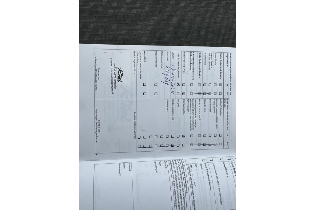 - Onderhoudsboekje aanwezig?