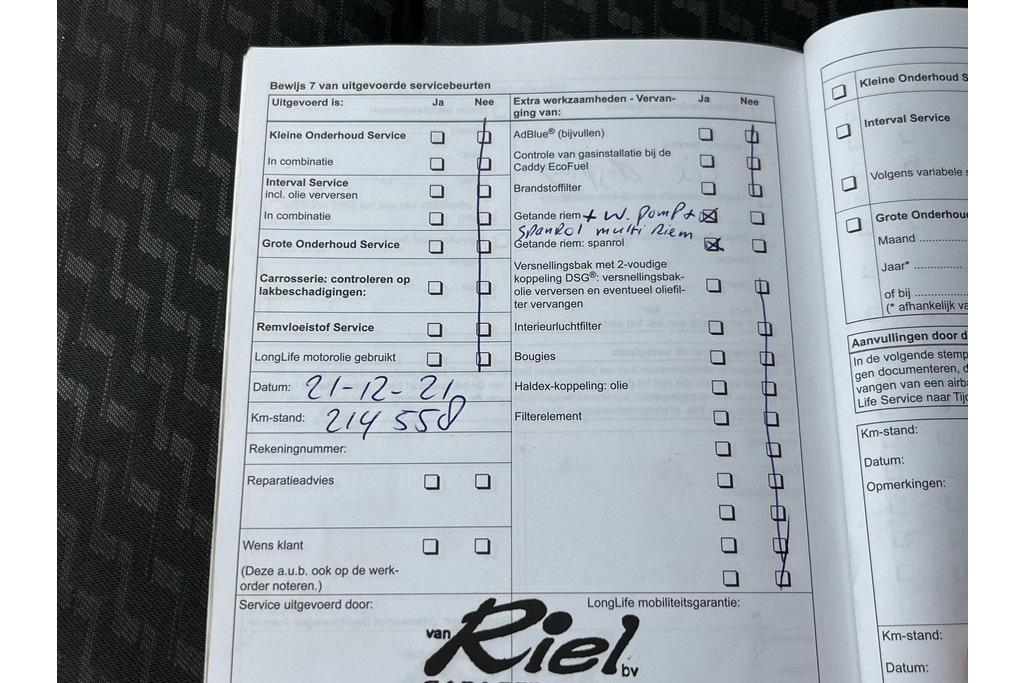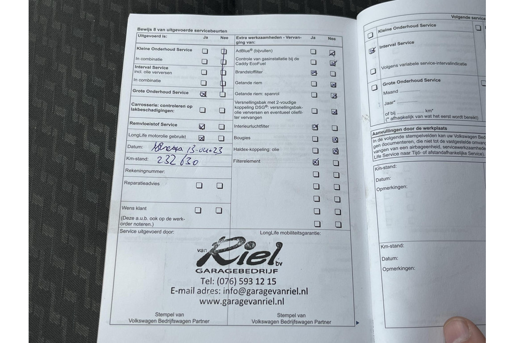 - Onderhoudsboekje aanwezig?