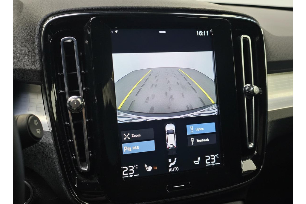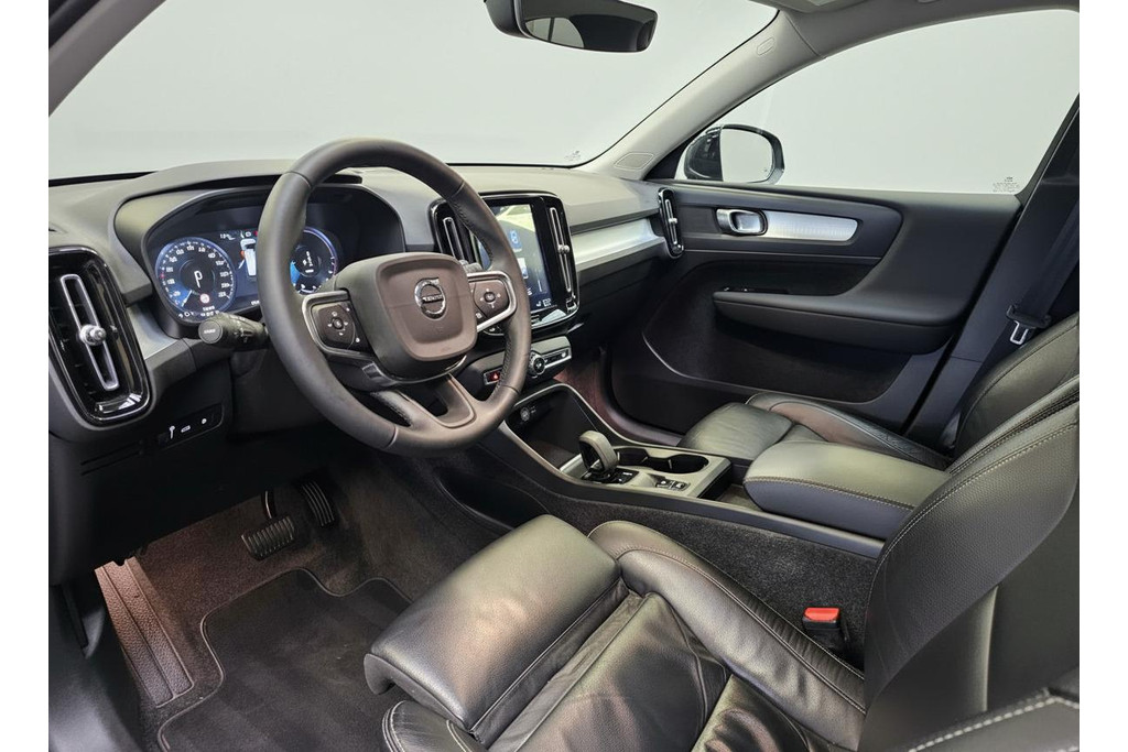 De iconische dagrijverlichting in "Thor's Hammer" design snijdt door de lucht en geeft de auto het typische Volvo aanzicht. De sportieve uitstraling wordt verder benadrukt door de stijlvolle tweekleurige lichtmetalen velgen en de robuuste zwarte grille met verticale lamellen. Praktisch is de XC40 zeker; met de wegklapbare trekhaak bent u altijd klaar voor elk avontuur. Manoeuvreren in drukke steden wordt een fluitje van een cent dankzij de parkeersensoren voor, die u helpen schadevrij te parkeren samen met de achteruitrijcamera. Deze XC40 is niet alleen een lust voor het oog, maar ook een genot om in te rijden, met de ongeëvenaarde kwaliteit en veiligheid die u van Volvo mag verwachten. Daarnaast is de Volvo voorzien van lederen bekleding met stoelverwarming en elektrisch verstelbare stoelen mét geheugen.