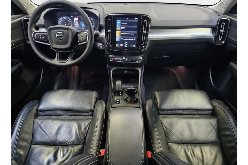 De iconische dagrijverlichting in "Thor's Hammer" design snijdt door de lucht en geeft de auto het typische Volvo aanzicht. De sportieve uitstraling wordt verder benadrukt door de stijlvolle tweekleurige lichtmetalen velgen en de robuuste zwarte grille met verticale lamellen. Praktisch is de XC40 zeker; met de wegklapbare trekhaak bent u altijd klaar voor elk avontuur. Manoeuvreren in drukke steden wordt een fluitje van een cent dankzij de parkeersensoren voor, die u helpen schadevrij te parkeren samen met de achteruitrijcamera. Deze XC40 is niet alleen een lust voor het oog, maar ook een genot om in te rijden, met de ongeëvenaarde kwaliteit en veiligheid die u van Volvo mag verwachten. Daarnaast is de Volvo voorzien van lederen bekleding met stoelverwarming en elektrisch verstelbare stoelen mét geheugen.