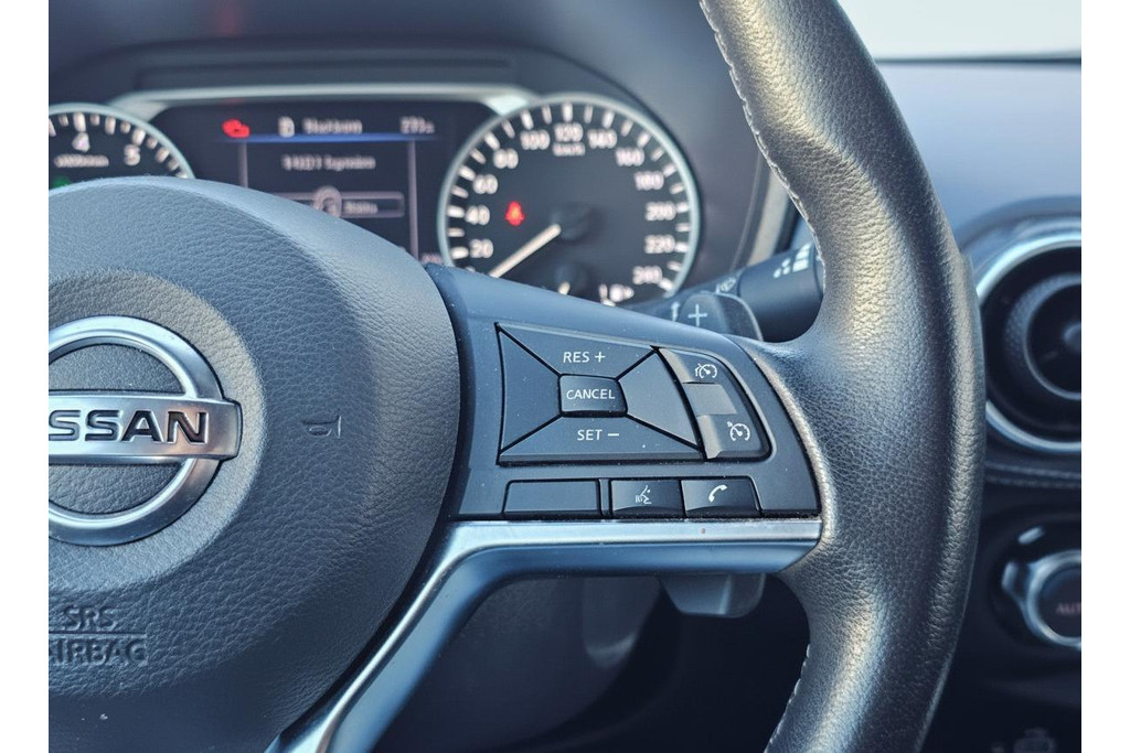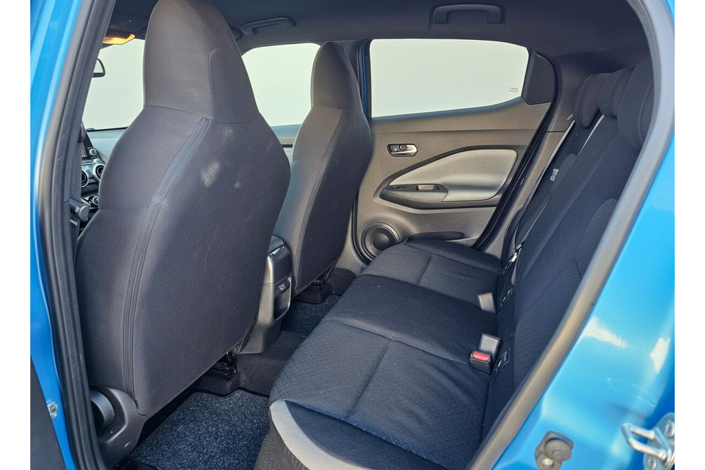 Afstand schatten bij het achteruitrijden? Niet nodig. U weet het precies, dankzij de achteruitrijcamera. Locatie, motorconditie, storingen... via Connected Services krijgt u alle vitale info over de auto door. Ook handig bij pech! U bedient het audiosysteem met DAB-radio via knoppen op het stuur of met uw stem. Zo kunt u steeds uw aandacht gericht houden op de weg. Ook over uw schouder ziet u onderweg niet alles wat er aan de achterzijde gebeurt. Daarom heeft deze Nissan Juke een achteropkomend verkeer waarschuwing. Zuinig en zeker zoeven? Dan is de cruise control ideaal! Natuurlijk behoren airconditioning, centrale deurvergrendeling met afstandsbediening en verstelbaar stuur ook tot de uitrusting van deze complete auto.