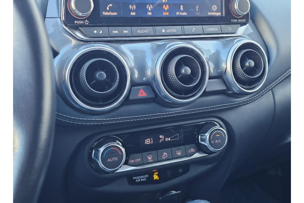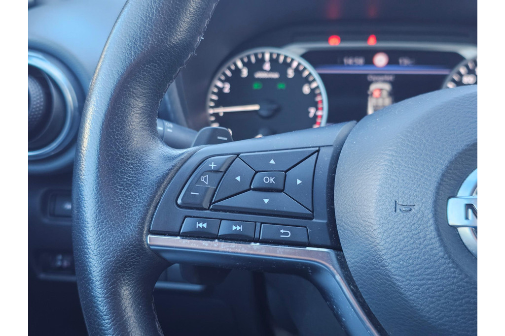Afstand schatten bij het achteruitrijden? Niet nodig. U weet het precies, dankzij de achteruitrijcamera. Locatie, motorconditie, storingen... via Connected Services krijgt u alle vitale info over de auto door. Ook handig bij pech! U bedient het audiosysteem met DAB-radio via knoppen op het stuur of met uw stem. Zo kunt u steeds uw aandacht gericht houden op de weg. Ook over uw schouder ziet u onderweg niet alles wat er aan de achterzijde gebeurt. Daarom heeft deze Nissan Juke een achteropkomend verkeer waarschuwing. Zuinig en zeker zoeven? Dan is de cruise control ideaal! Natuurlijk behoren airconditioning, centrale deurvergrendeling met afstandsbediening en verstelbaar stuur ook tot de uitrusting van deze complete auto.