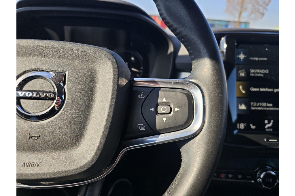 Een Volvo is één brok veiligheid, rijplezier en perfecte prestaties. 'Volvo for life', zeggen ze in Zweden. En dat merkt u meteen. Rijden op brandstof én elektriciteit? Dat kan, met de hybride motor van deze Volvo XC40. De elektromotor ondersteunt of neemt het deels over van de brandstofmotor als dat uitkomt. Scheelt lekker in de kosten! De verwarmbare voorstoelen benadrukken nog maar eens dat we hier te maken hebben met een regelrechte verwenauto voor bestuurder en bijrijder. Zo'n verwarmd stuurwiel is een comfortabele extra, zeker in de winter. Ook 18 inch lichtmetalen velgen, LED koplampen, extra getint glas, in delen neerklapbare achterbank, LED-achterlichten en verstelbare lendensteunen horen tot de voorzieningen op deze auto.