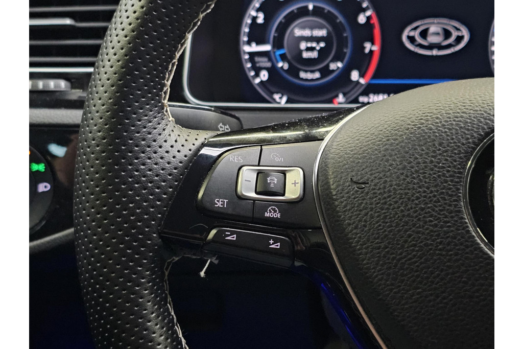 Het digitale dashboard geeft een nauwkeurig en makkelijk overzicht van alle belangrijke functies. Adaptive cruise control is een comfortabele en veilige optie. Het systeem reguleert de snelheid en houdt automatisch afstand tot uw voorligger. Wat is de onderhoudsstatus van deze auto? U checkt het snel, simpel en overal via uw smartphone. Prettig, altijd weten waar je moet zijn en hoe lang de rit nog duurt met het full map navigatiesysteem. Op een drukke weg heeft u soms ogen in uw achterhoofd nodig. De sensoren aan de achterzijde nemen die functie over en geven een achteropkomend verkeer waarschuwing als een achterligger te dicht op u zit. Met automatische airconditioning, DAB ontvangst, parkeersensoren voor en achter, regensensor, automatisch dimmende binnenspiegel en lederen stuur is deze Volkswagen helemaal compleet.