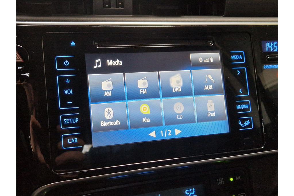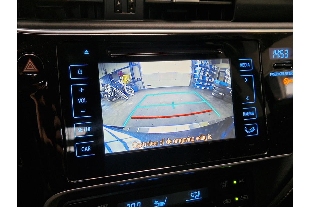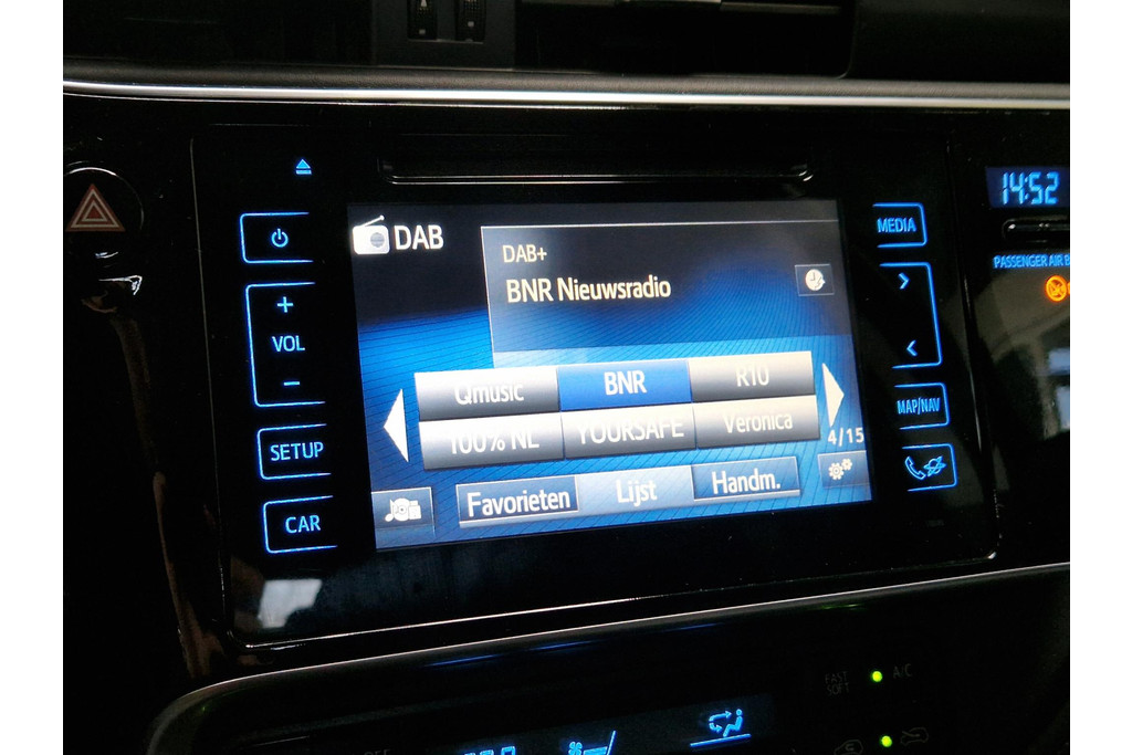 De achteruitrijcamera brengt precies in zicht wat zich achter u bevindt en toont een glashelder beeld op hoge resolutie. Een geluidssignaal waarschuwt hoeveel ruimte u nog heeft. Met de routebegeleiding van het full map navigatiesysteem kunt u zich volledig op het verkeer concentreren. Het comfort wordt verhoogd door de aanwezige electronic climate control. Harder en zachter met een druk op de knop: de audiobediening op het stuurwiel maakt het mogelijk. Met de DAB-ontvanger heeft u keuze uit talloze digitale radiozenders met de allerhoogste geluidskwaliteit. Met regensensor, cruise control, keyless entry, automatisch dimmende binnenspiegel, lederen stuur en isofix-aansluiting is deze Toyota helemaal compleet.