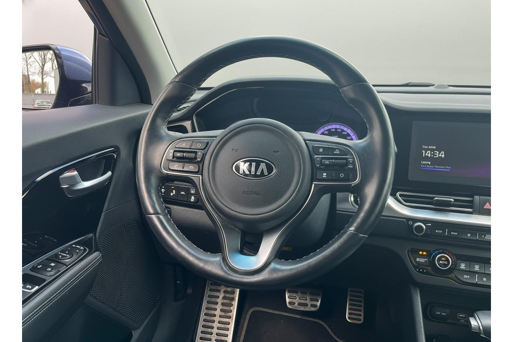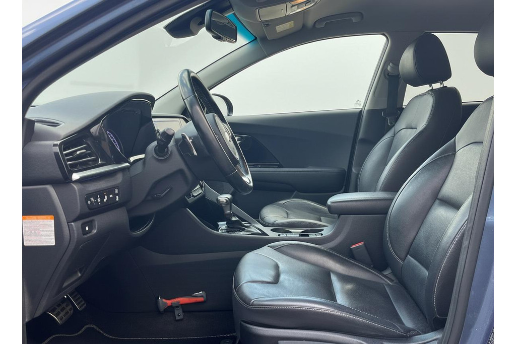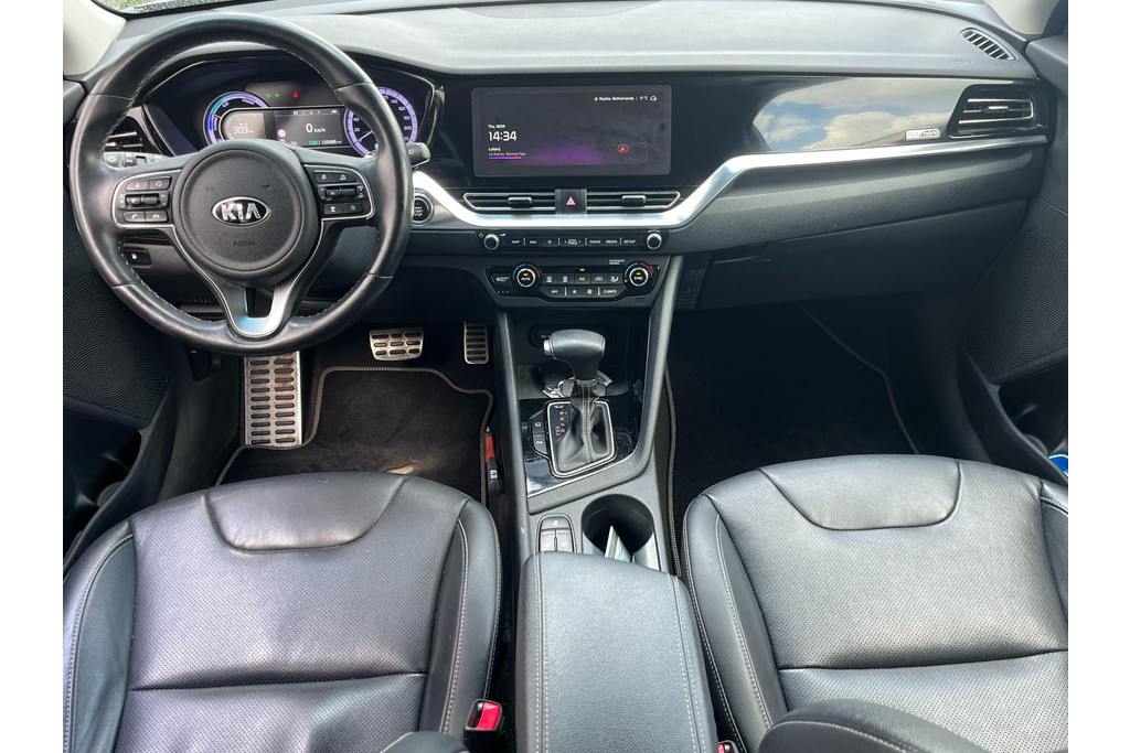 Met een auto als deze Kia Niro komt u absoluut goed voor de dag. De aanwezige hybride motor is een slimme extra. Tijdens het rijden en remmen laadt de accu bij, zodat de elektromotor de brandstofmotor kan ondersteunen of het zelfs helemaal overnemen. Dat scheelt in kosten! De auto is uitgerust met stijlvolle, lederen bekleding. Een koude start op frisse dagen? Niet met de behaaglijke stoelverwarming. Als het buiten koud wordt, voelt zo'n verwarmd stuurwiel heerlijk aan. Ook 16 inch lichtmetalen velgen, LED koplampen, extra getint glas, in delen neerklapbare achterbank en LED-achterlichten zijn aan boord.